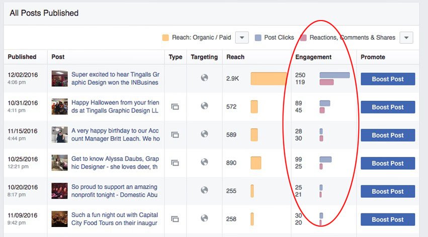Not everything you post to your business page is going to be seen by all of your fans and followers. In fact, Facebook uses a relatively complex engagement formula to determine how often your messages show up. By evaluating your reach, you can get a sense of whether you’re making a strong impression on fans and followers or not.