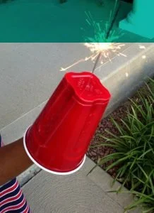 I absolutely love fireworks … until they’re in the hands of my three girls. A few years ago, my husband and I outlawed sparklers after one of my twins burned her little fingers touching the 1,800-degree stem.Then, I found this life hack on Pinterest and it saved the day!Simply poke the sparkler in the end of a red solo cup and your littles can wave away without fear.I’d also recommend filling a metal bucket with water to drop the hot sparkers in once they’ve burned out.